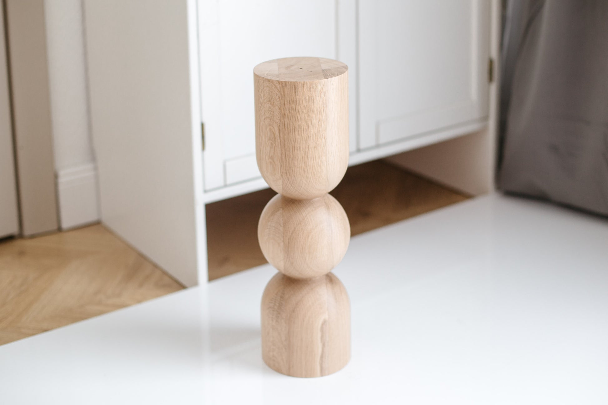 Pied de table basse en bois naturel avec sphère, H500 mm