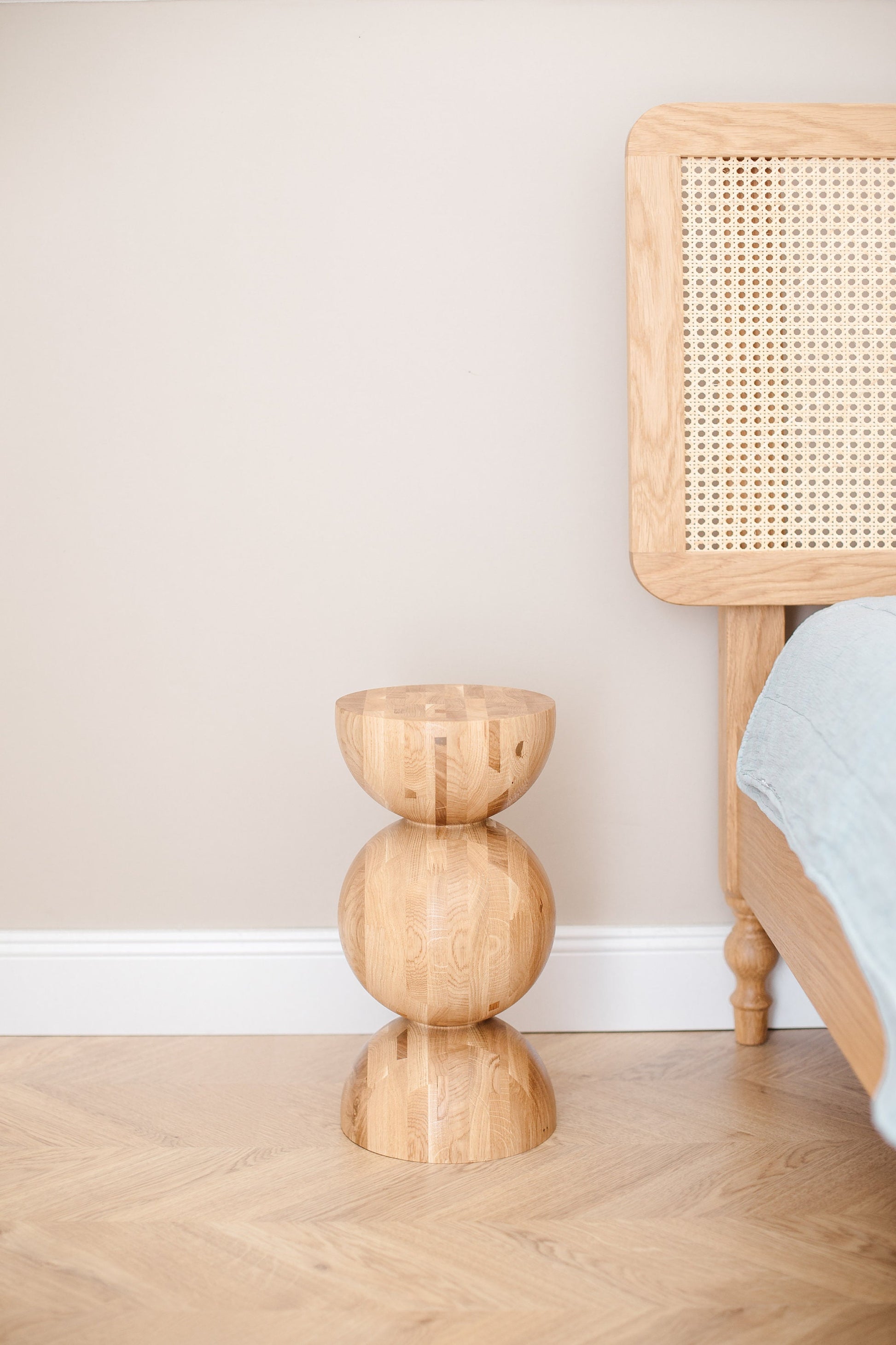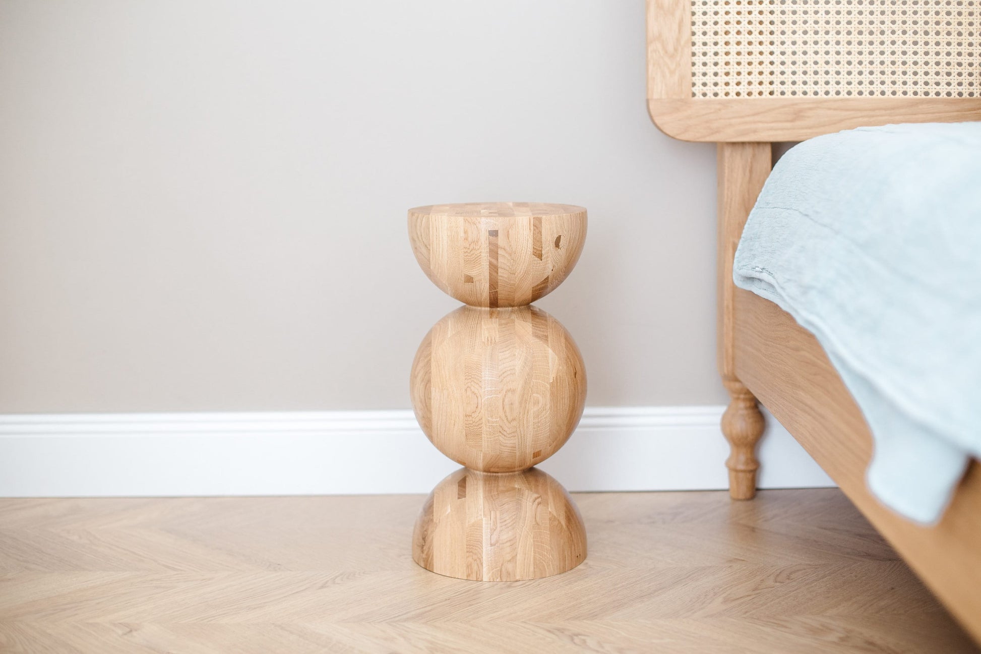 Handmade Wooden Nightstand – Solid Wood with Elegant Sphere Detail H400 mm