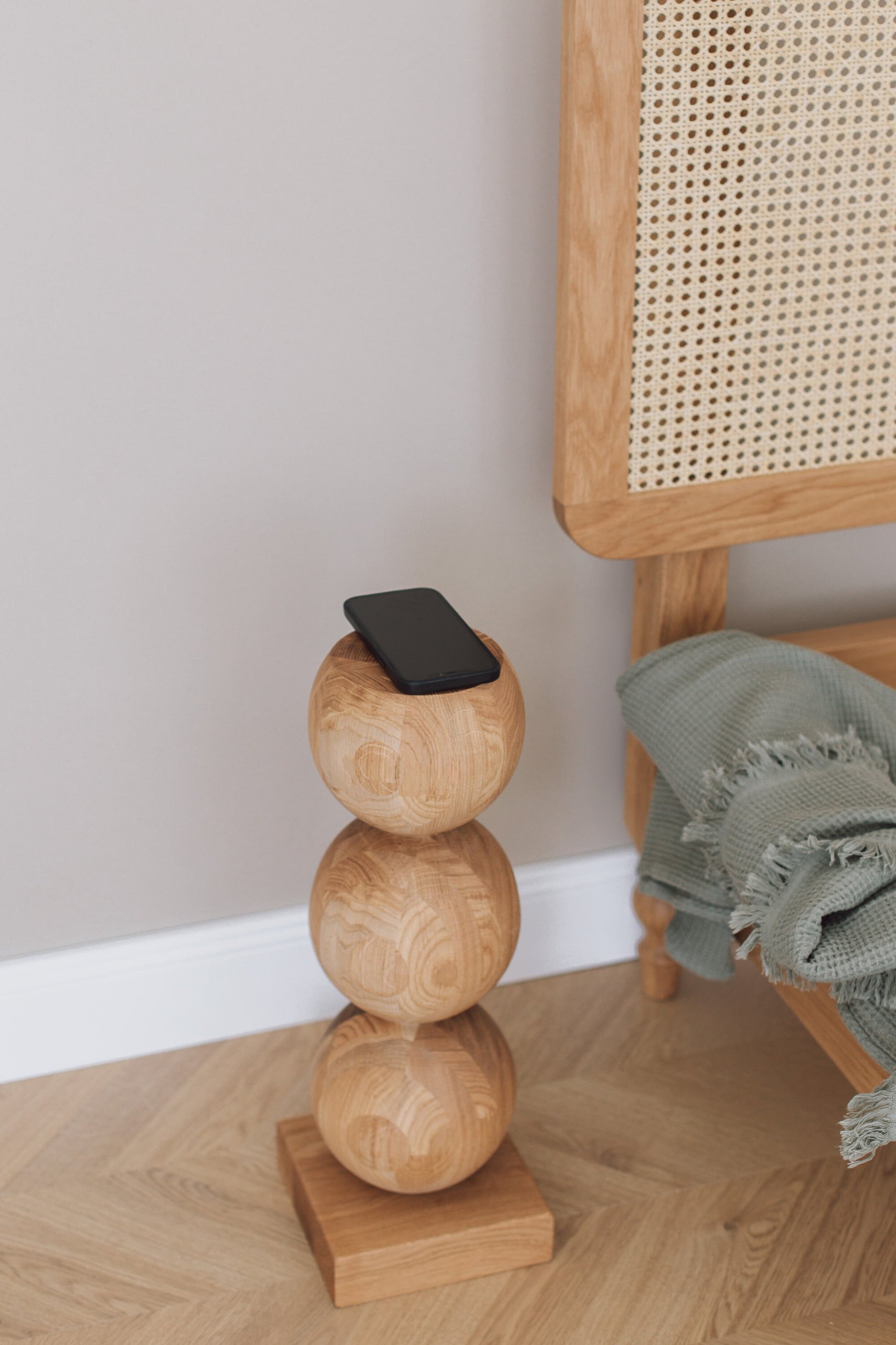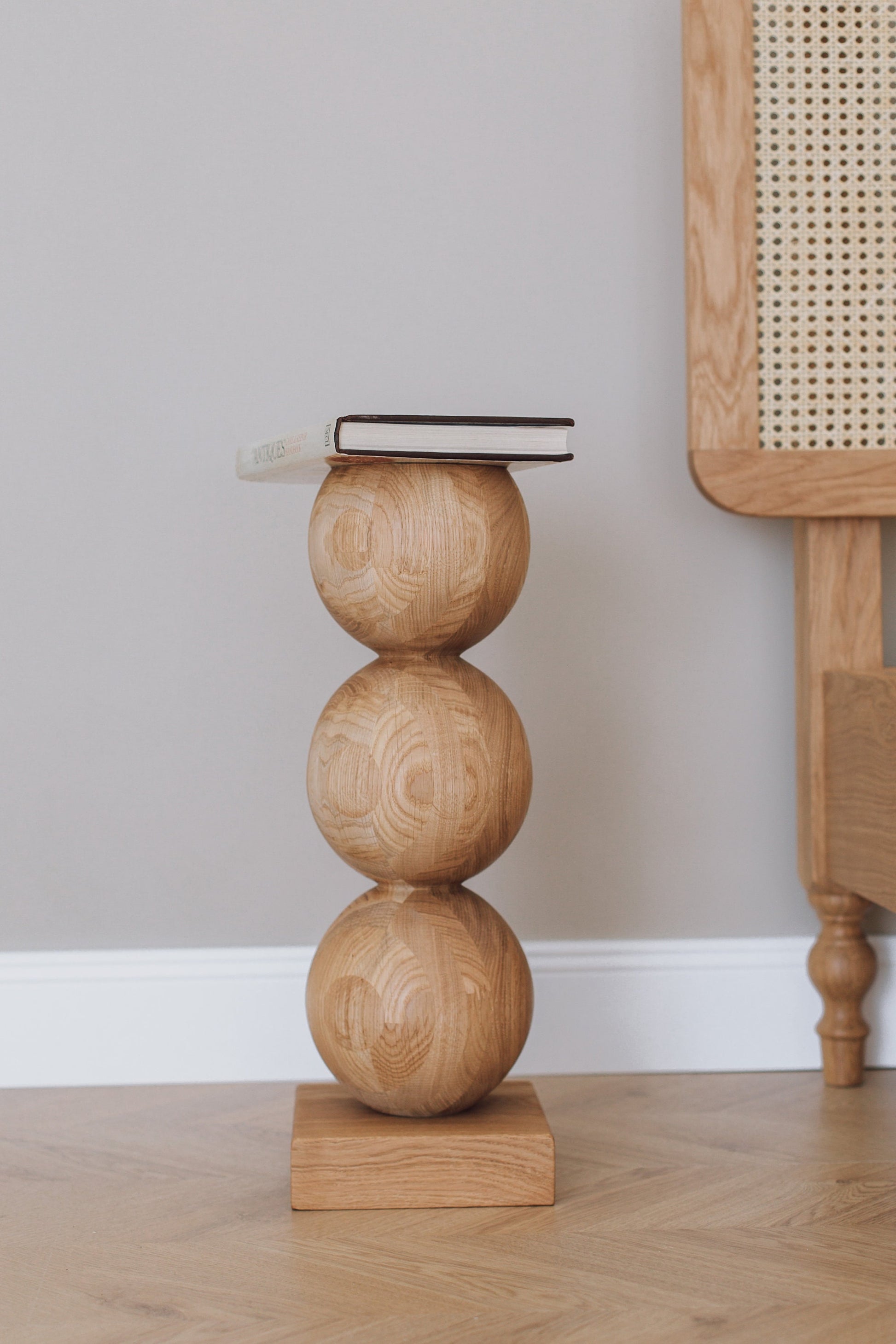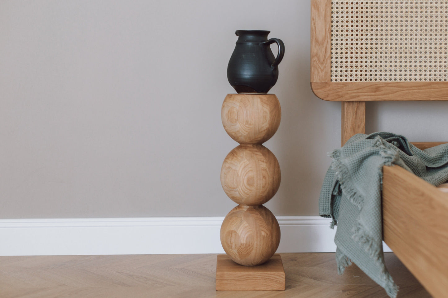 Elegant Bedside Table – Handcrafted Wood with Central Sphere Accent H495 mm