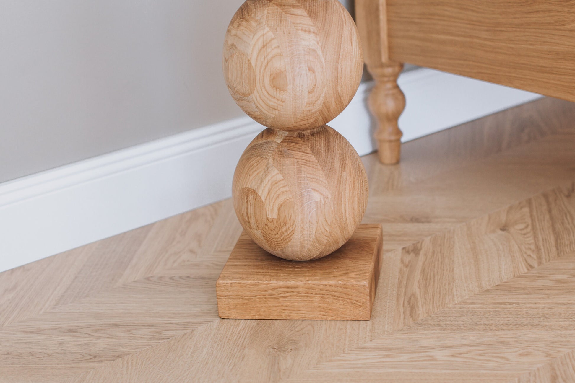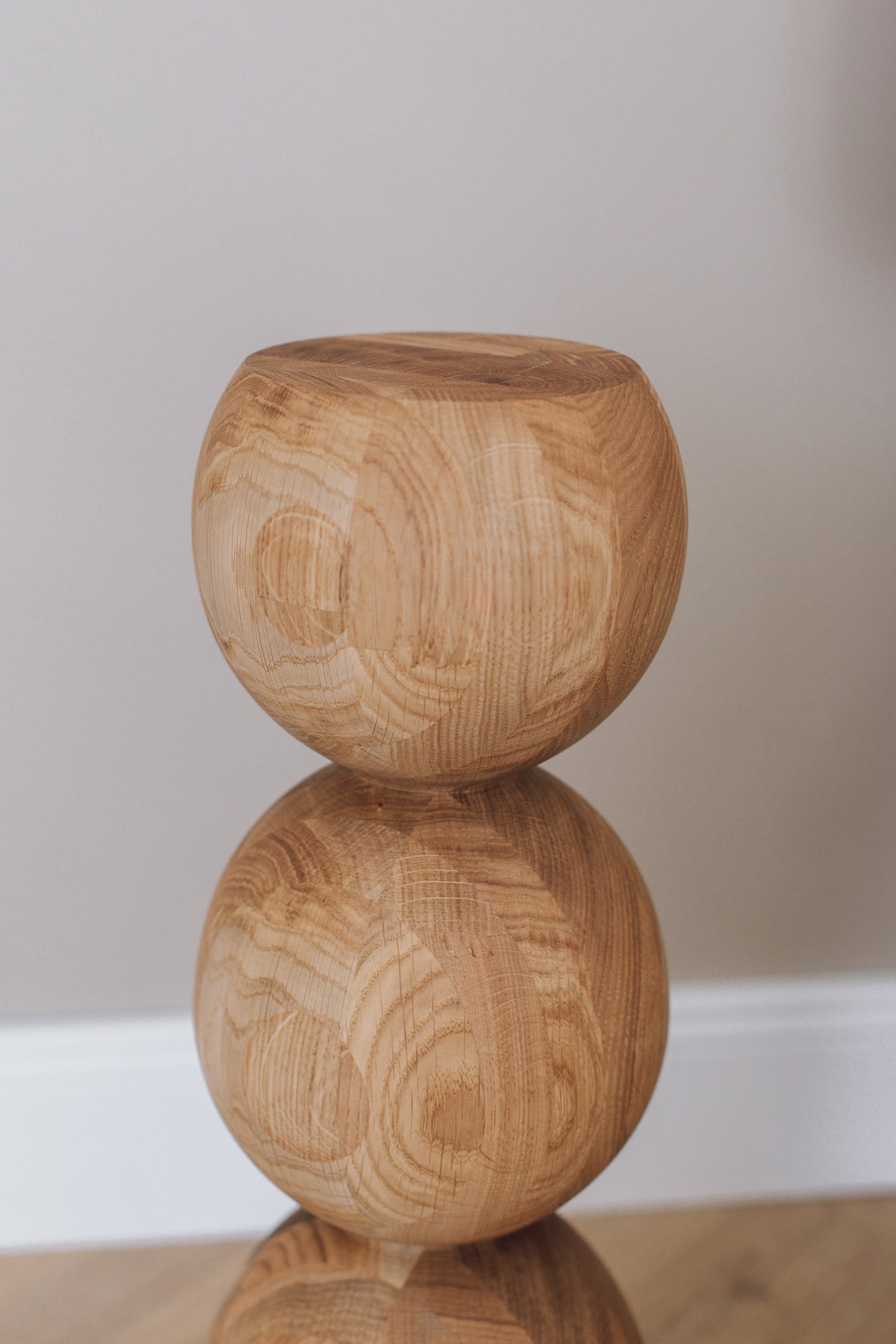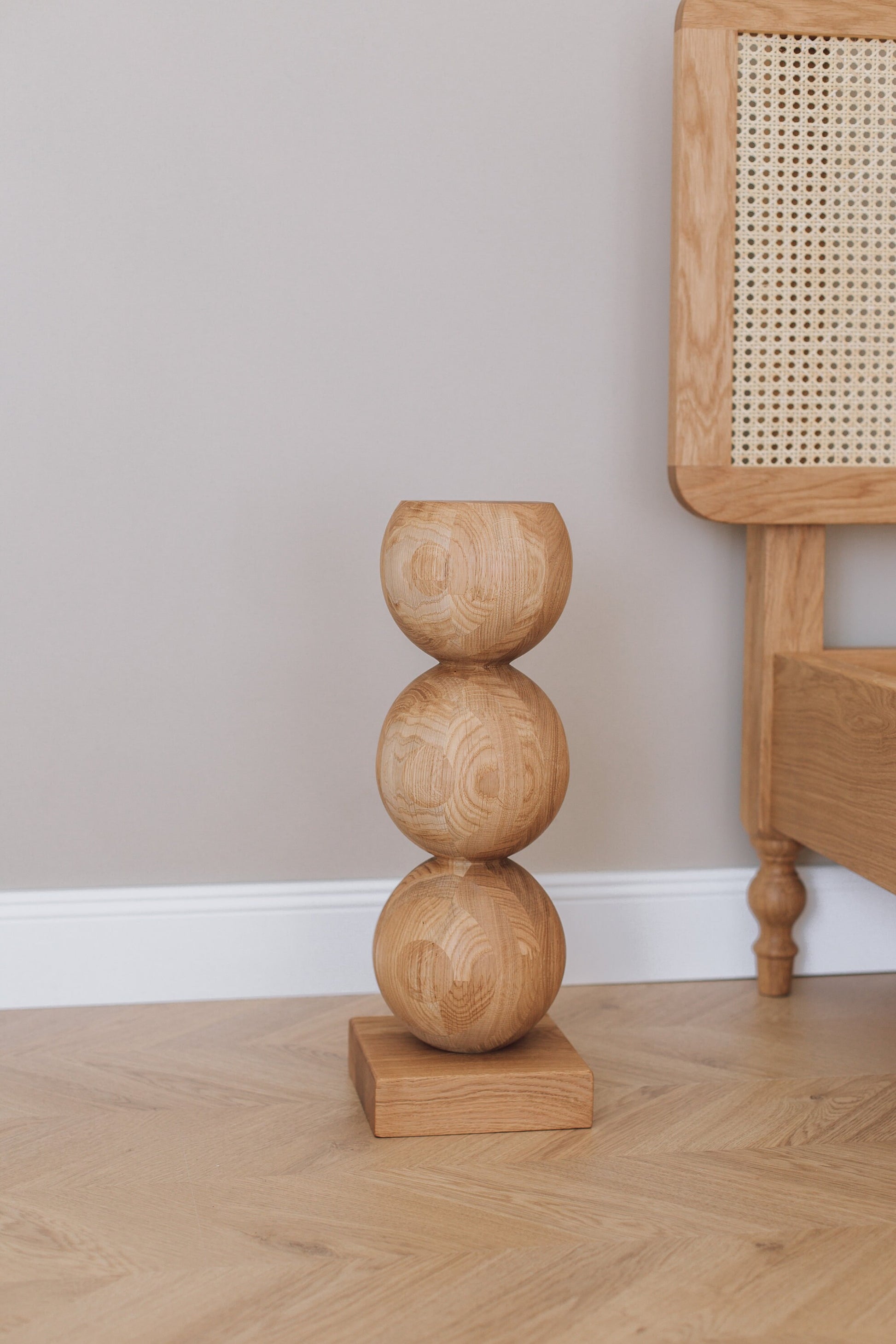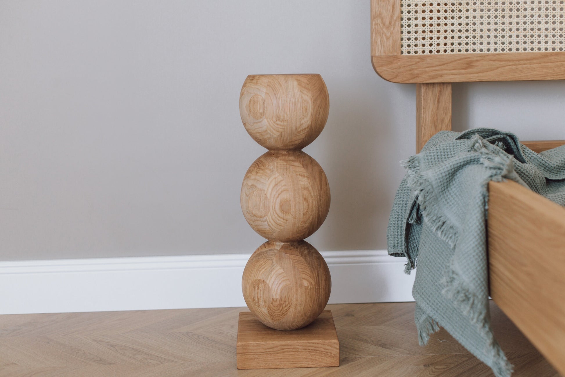 Elegant Bedside Table – Handcrafted Wood with Central Sphere Accent H495 mm