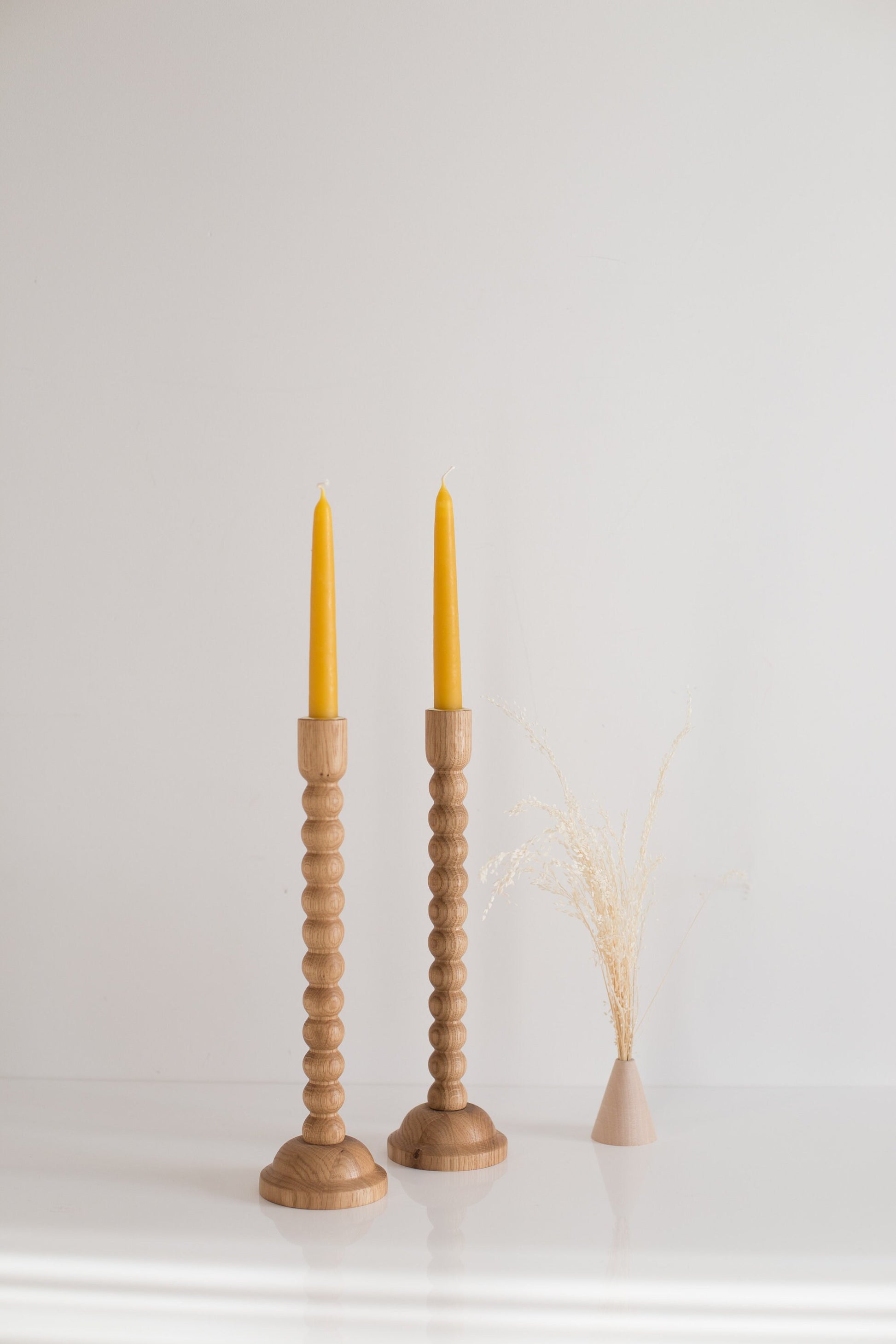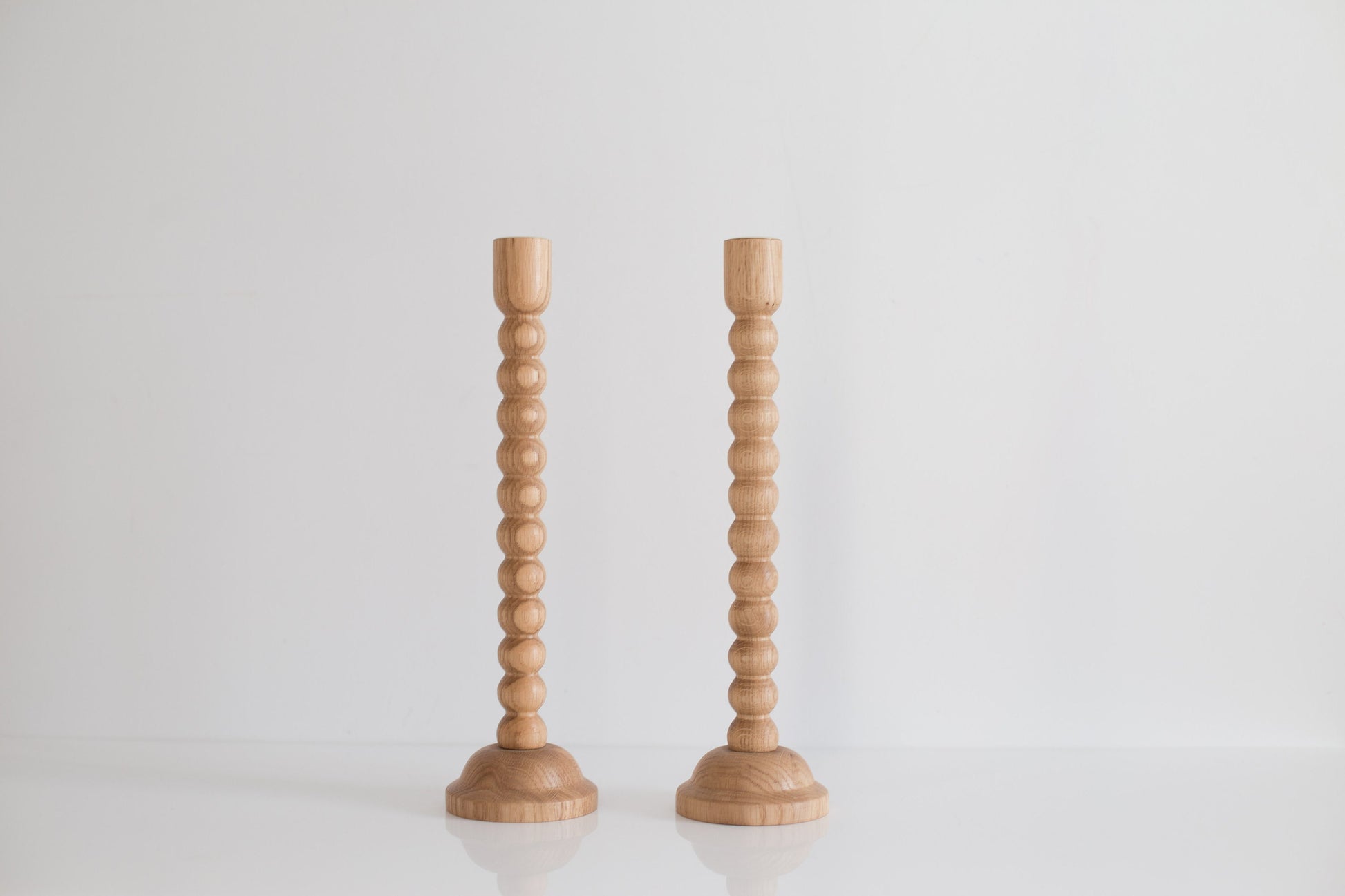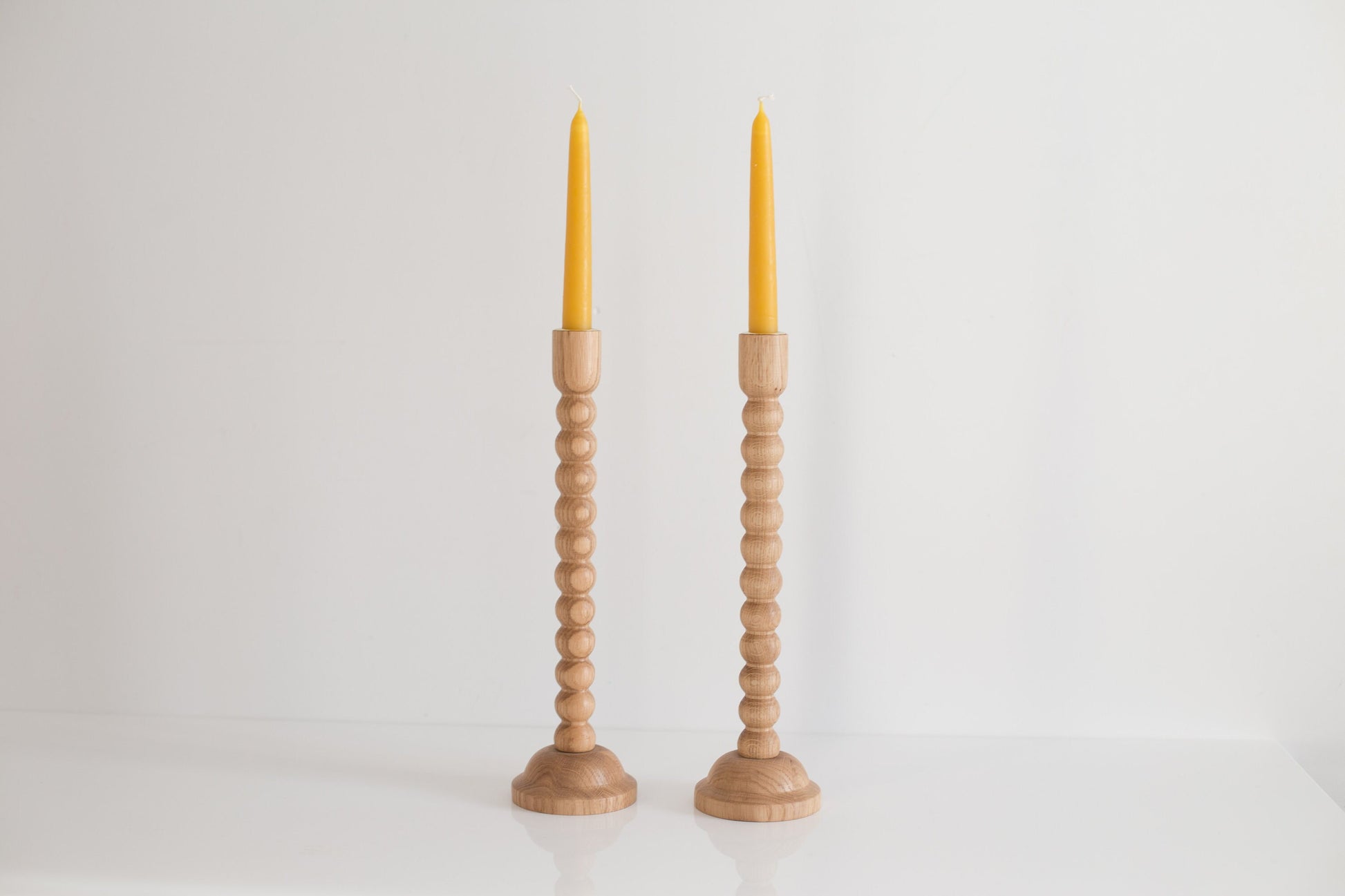 Set of 2 Wooden Taper Candle Holders, Bubble, Hand-Turned Oak